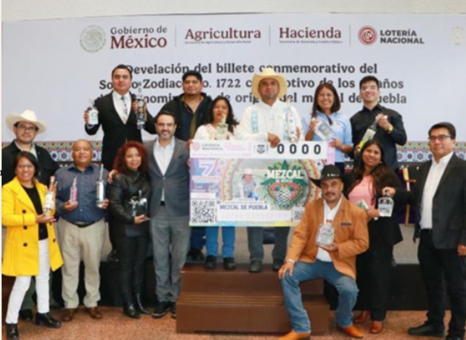 Comunicado. La Secretaría de Agricultura y Desarrollo Rural (SADER) del gobierno de México en presencia del Coordinador General de Producción Agrícola y Ganadera, Héctor Arronte Calderón, llevó a cabo la develación del billete de la Lotería Nacional conmemorativo del sorteo Zodiaco dedicado al décimo aniversario de la Denominación de Origen del Mezcal Poblano.