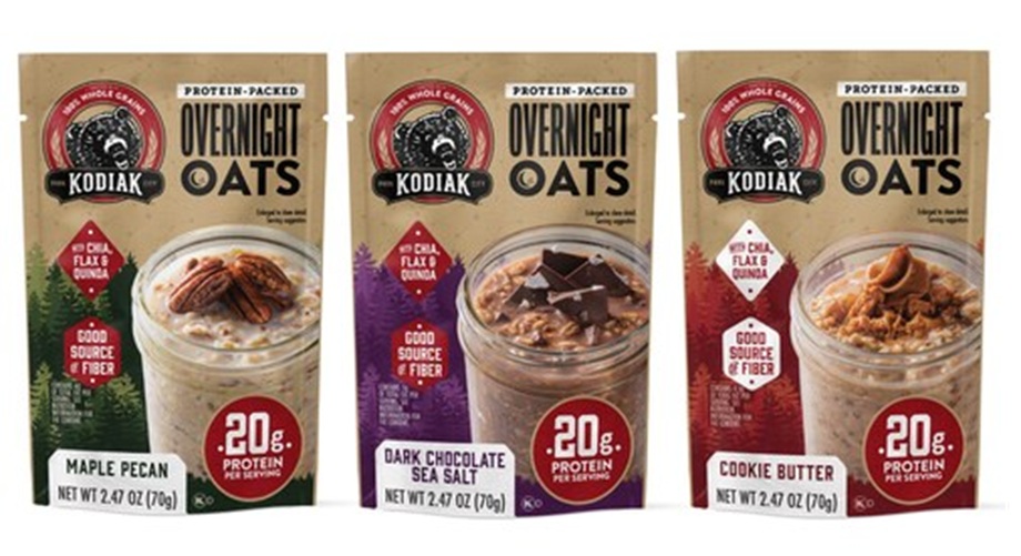 Comunicado. Kodiak, marca de productos integrales para el desayuno y refrigerio, ricos en proteínas, anunció su última innovación en una categoría completamente nueva: Overnight Oats. Disponible en todo Estados Unidos en tres sabores: arce y nuez, chocolate negro con sal marina y mantequilla de galleta, esta nueva línea de productos está elaborada con avena 100% integral, chía, lino y quinoa, y contiene 20 g de proteína por porción.
