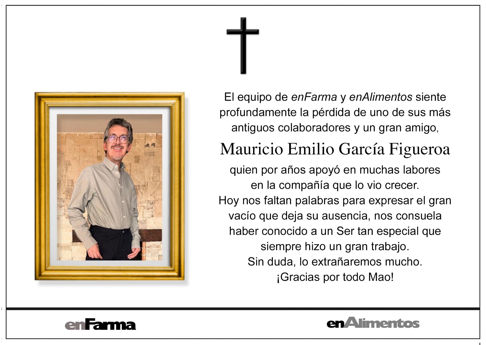 El equipo de enFarma y enAlimentos lamenta profundamente el sensible fallecimiento de Mauricio Emilio García Figueroa Anterior Leche para el Bienestar anuncia compra histórica de leche fresca mexicana Siguiente 11 y 12 de febrero: Congreso Agroindustrial de la ANDI